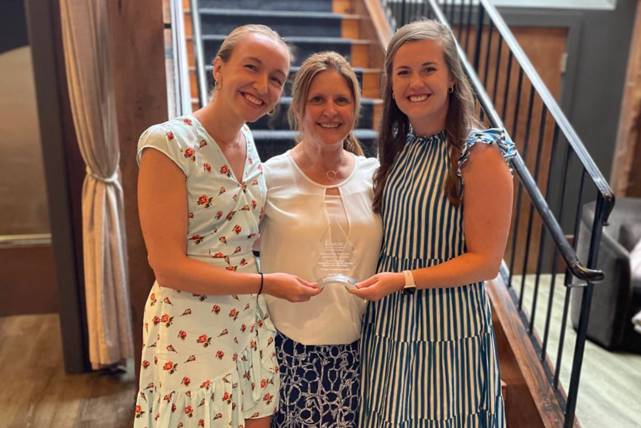 The Community Aid Relief, Education and Support (CARES) Therapy Clinic, the student-run pro-bono clinic offering occupational, physical and speech therapy to underinsured and uninsured individuals in the Charleston area was one of five award winners. Students in the Master in Health Administration, Occupational Therapy Doctorate, Doctor of Physical Therapy, and Master of Science in Speech-Language Pathology programs work collaboratively under the guidance of faculty and licensed clinicians to provide these services to the community.
