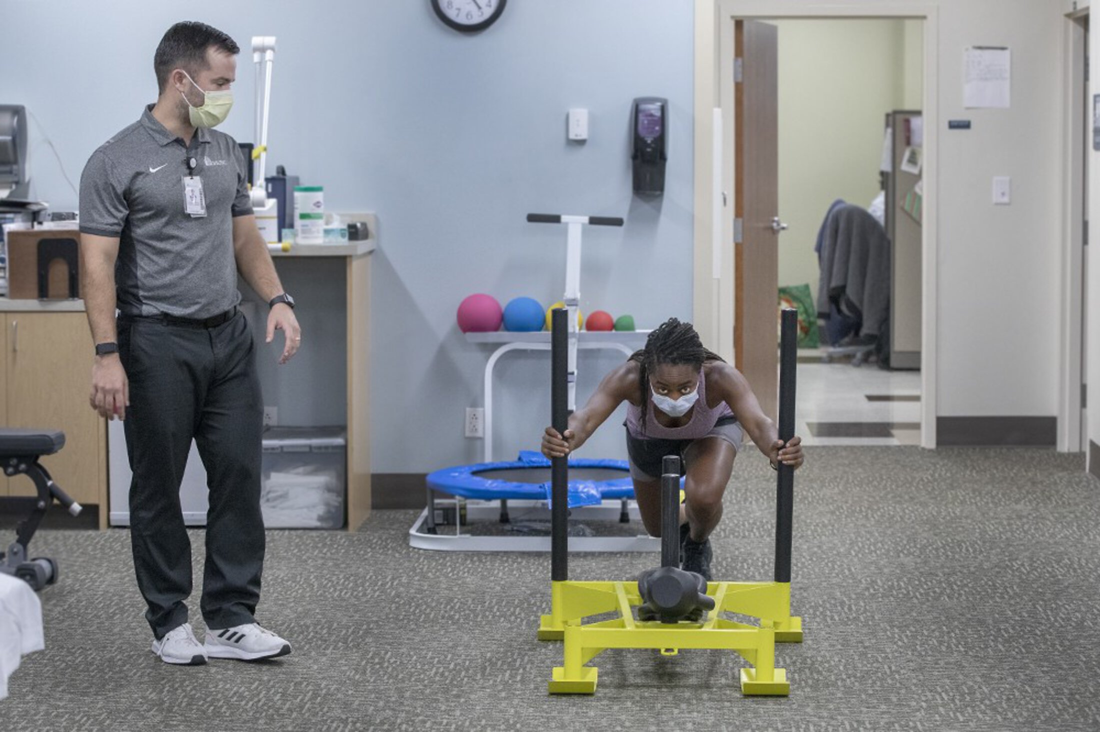 Bridge Program therapists use technology and physical tests to analyze their patients’ movement and performance. That lets them tailor the rehab to the athlete’s needs, reducing the risk of reinjuring the part of the body that was hurt — or suffering an entirely new injury.